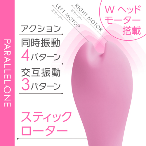 先端に並列で2つのモーターを搭載して、個別に振動させる事が出来るツインモータースティックです。